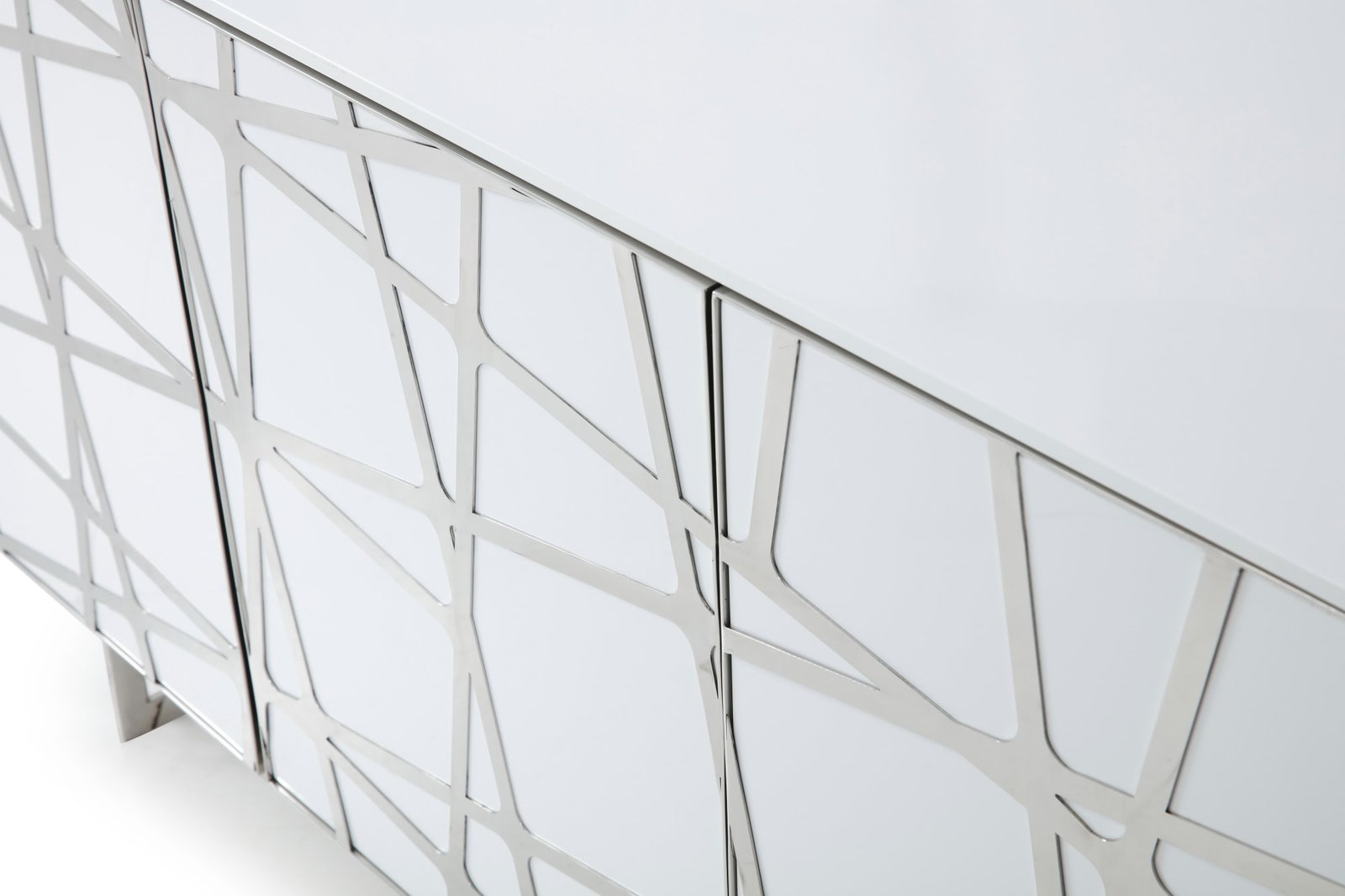 El buffet glamuroso, moderno, blanco y cromado tiene 4 puertas, con