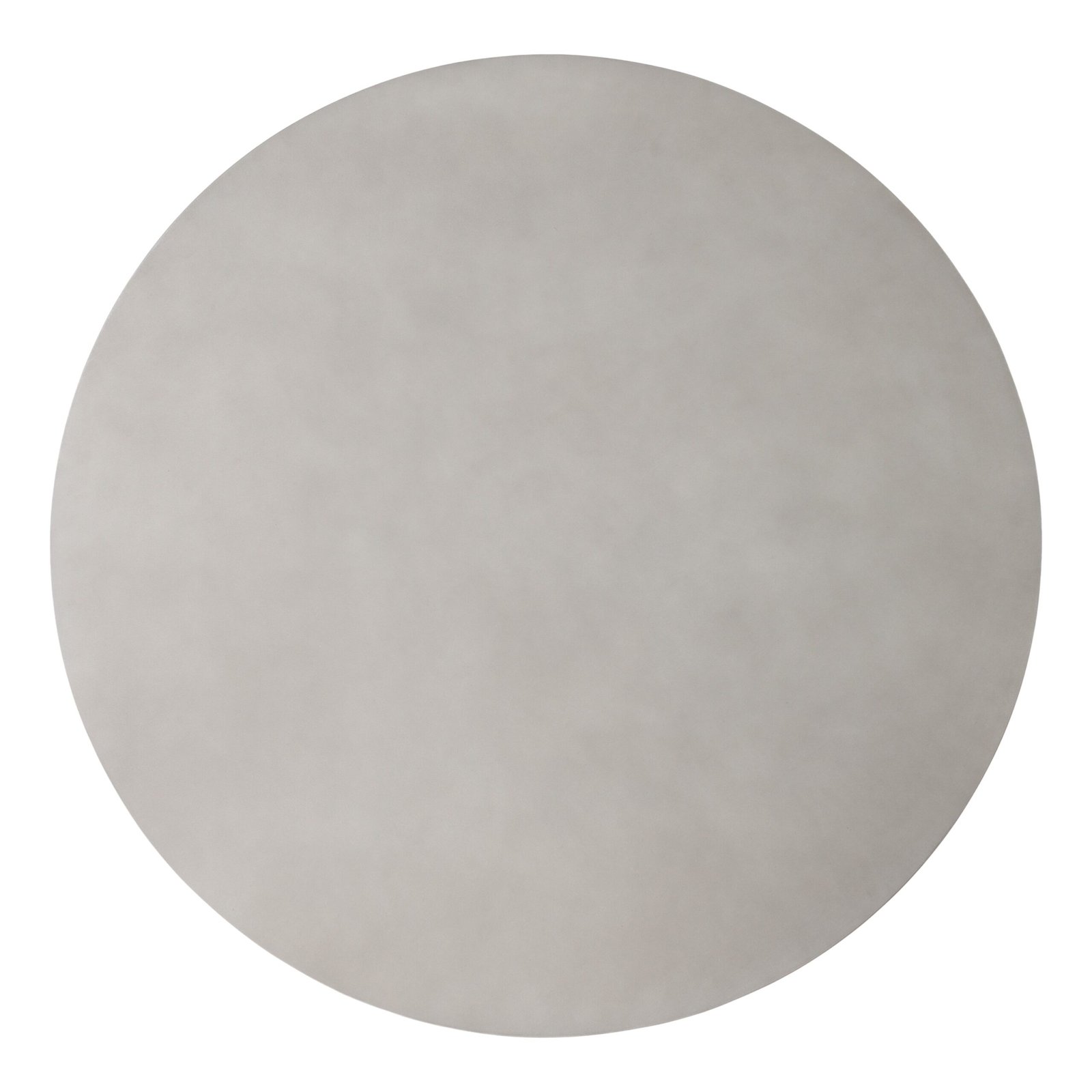 una tapa de imitación de hormigón gris y una base redondeada de nogal claro