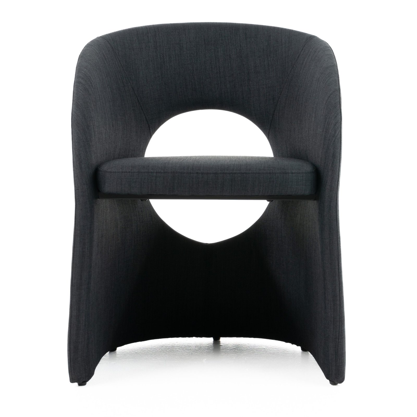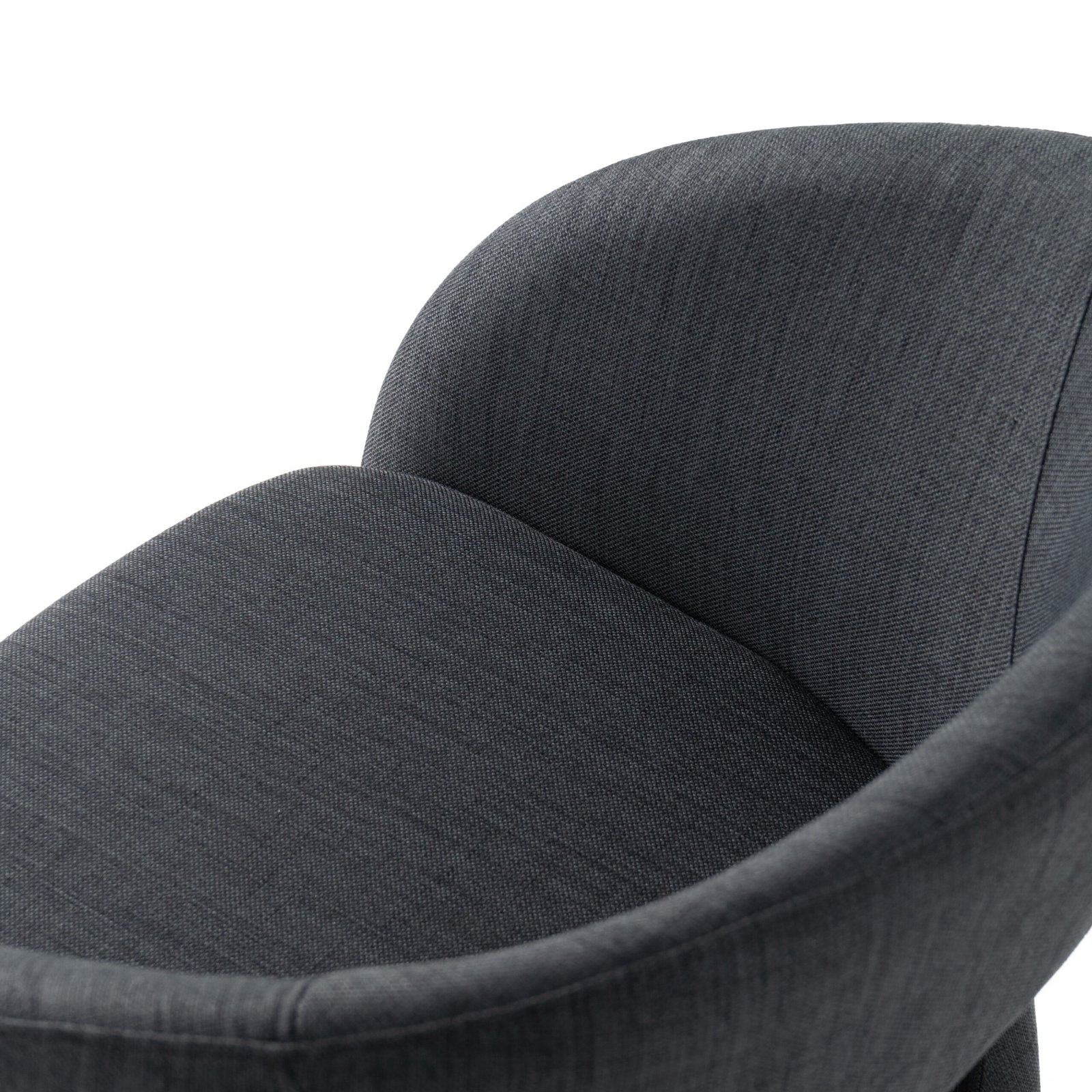redondo único en el respaldo. Tapizado en tela gris oscuro carbón y quedará