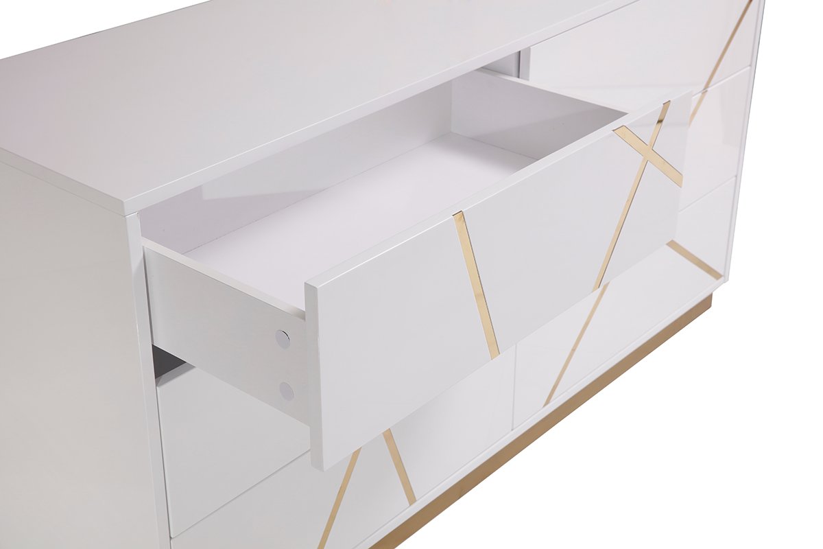 Cómoda moderna Modrest Nixa en blanco y dorado