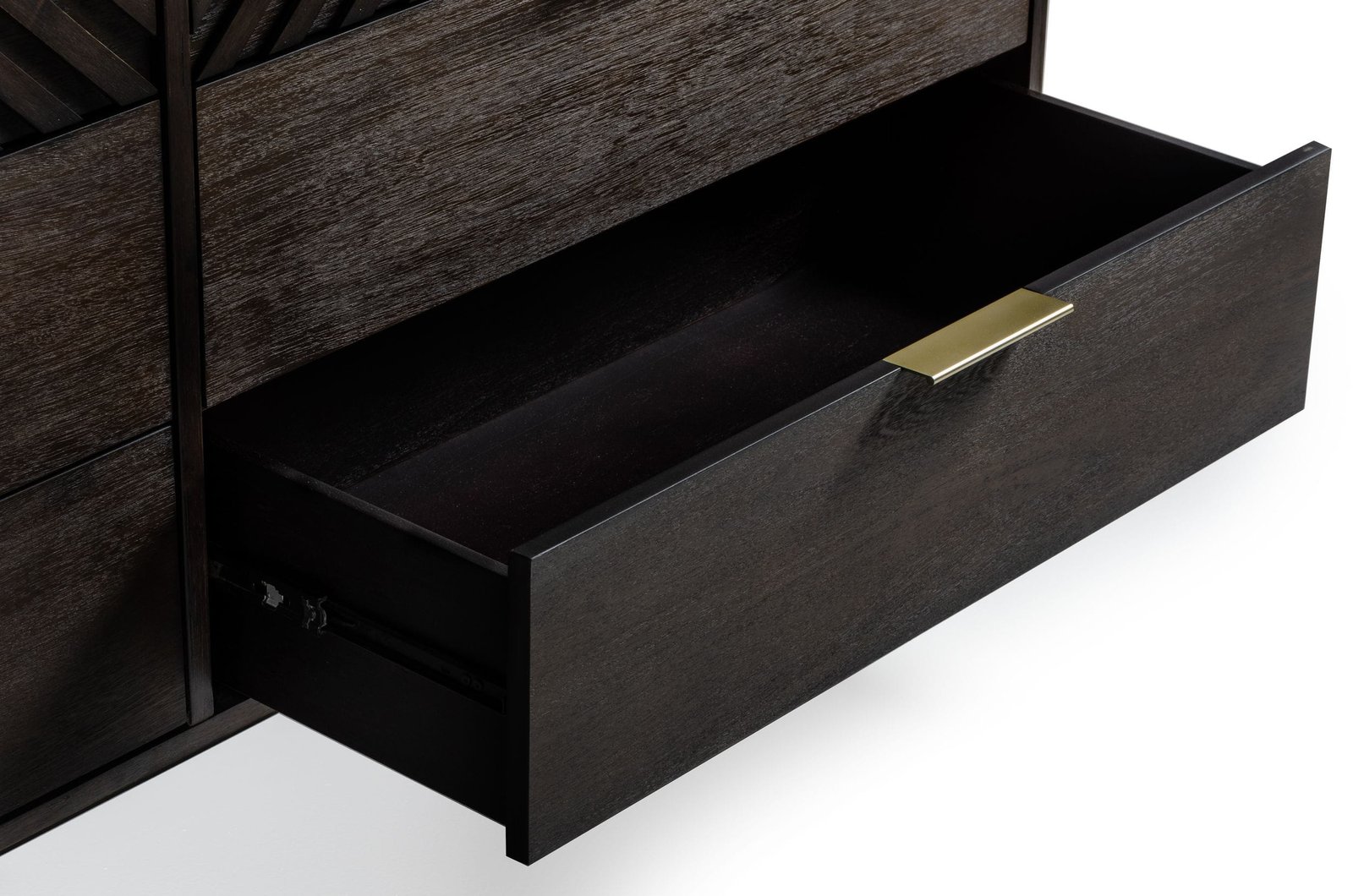 de acacia oscura es robusta y hermosa, mientras que los tiradores de latón