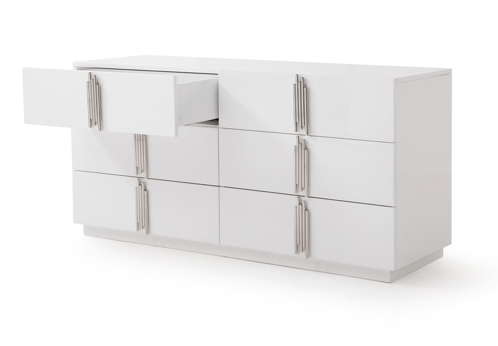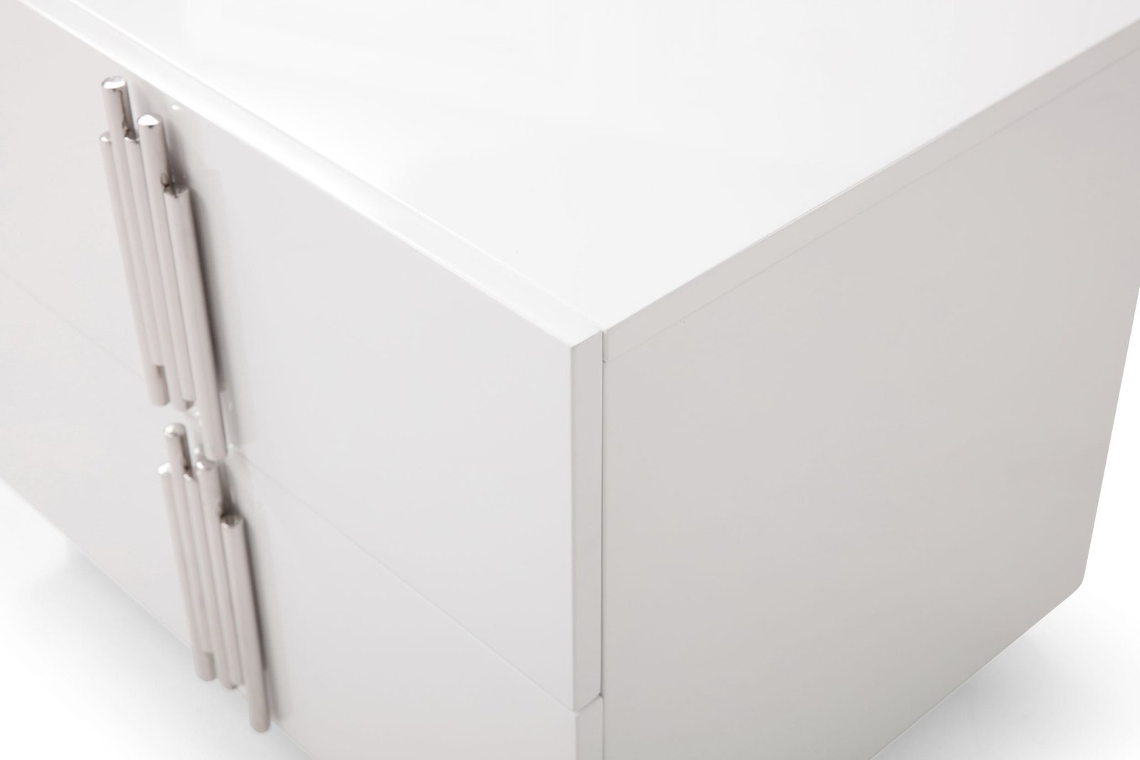 Con su elegante acabado en blanco brillante y sus líneas limpias, esta