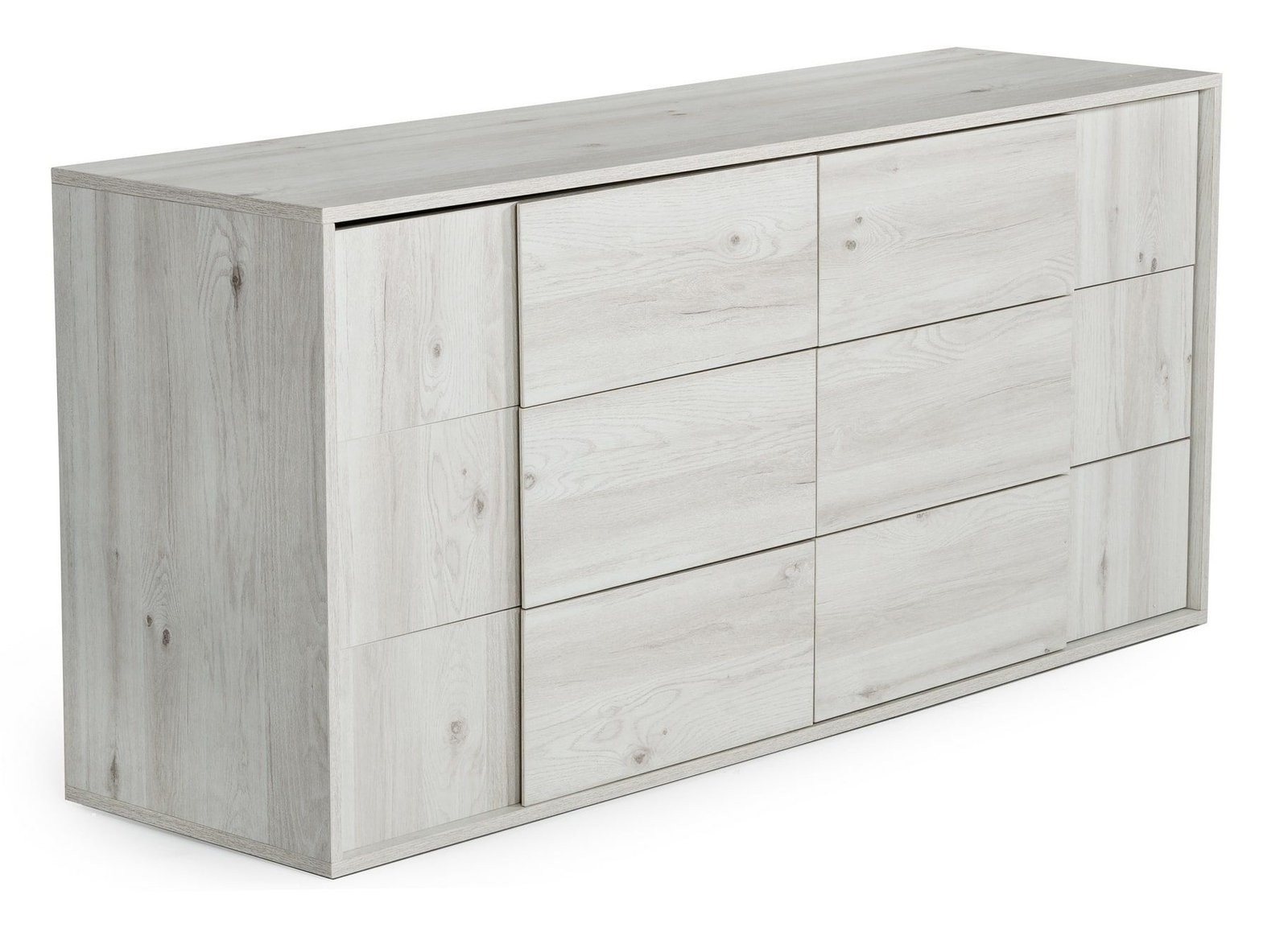 cómoda, con acabado de roble encalado, podría usarse en un dormitorio de
