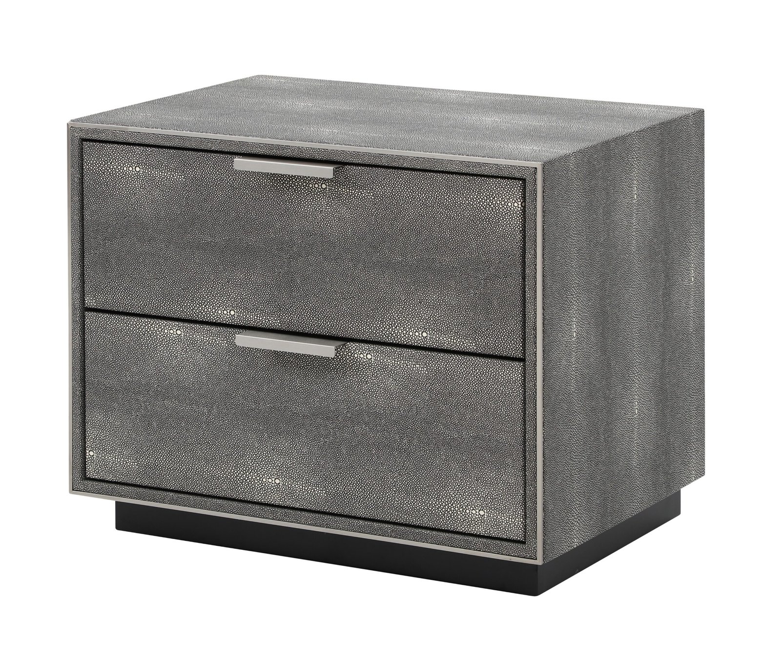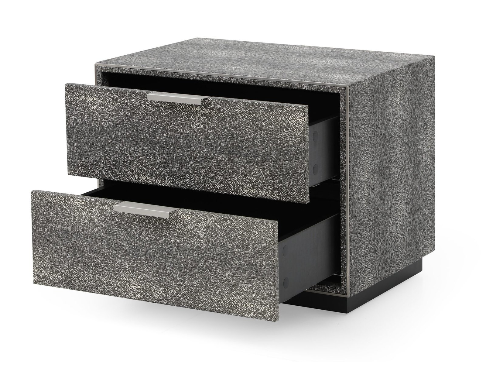 Shagreen y detalles en acero inoxidable.