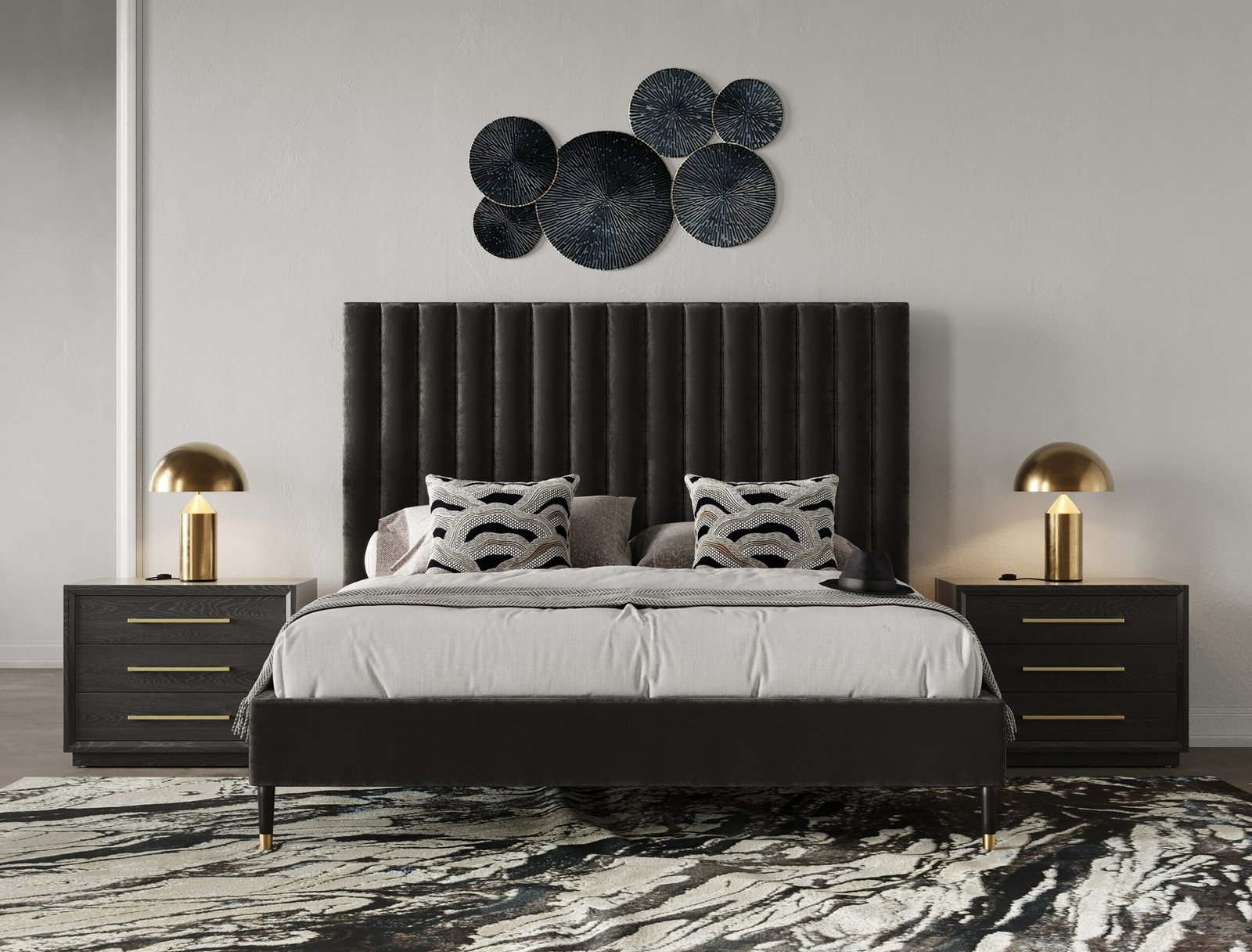 Modrest Hemlock – Recámara moderna de terciopelo gris oscuro