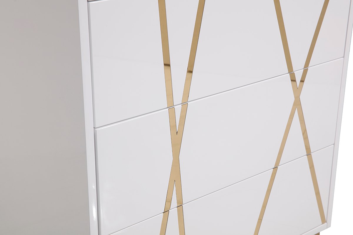 La cómoda moderna en blanco y dorado Modrest Nixa aporta gracia y estilo a