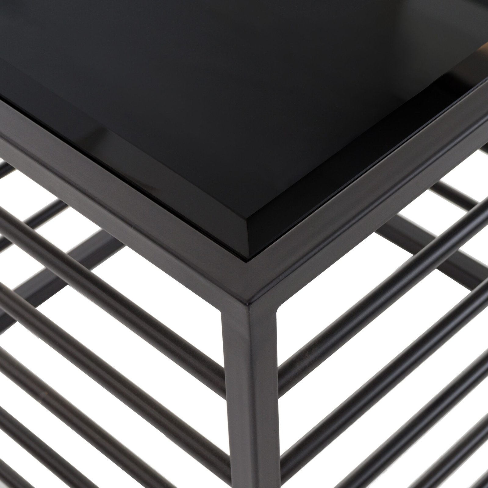 que sostienen la base cuadrada. La tapa de cristal oscuro es cálida y