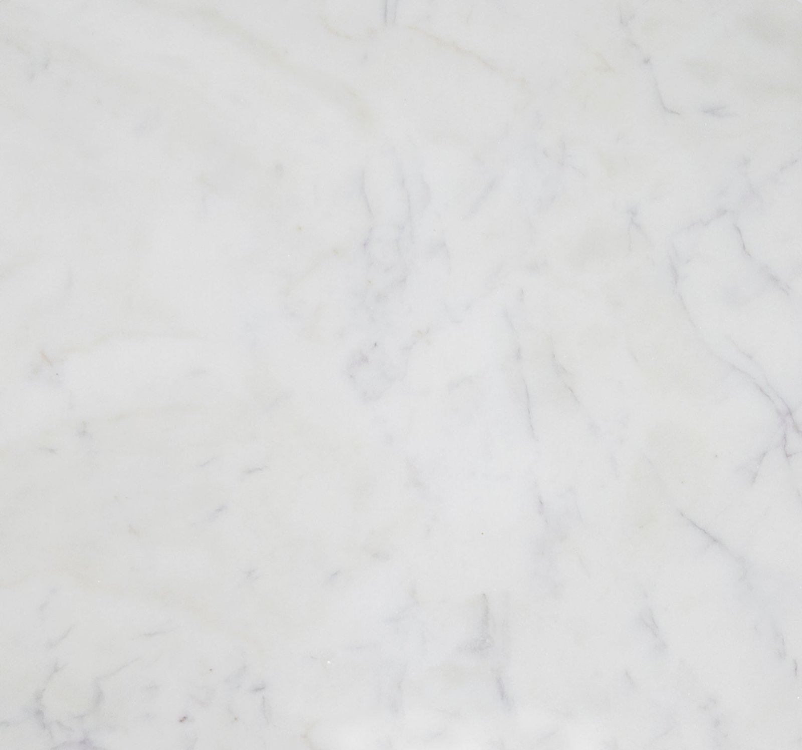 Esta mesa moderna cuenta con una tapa de mármol blanco de Carrara y una base