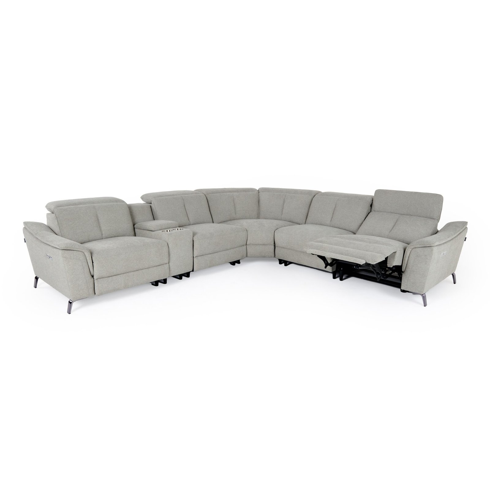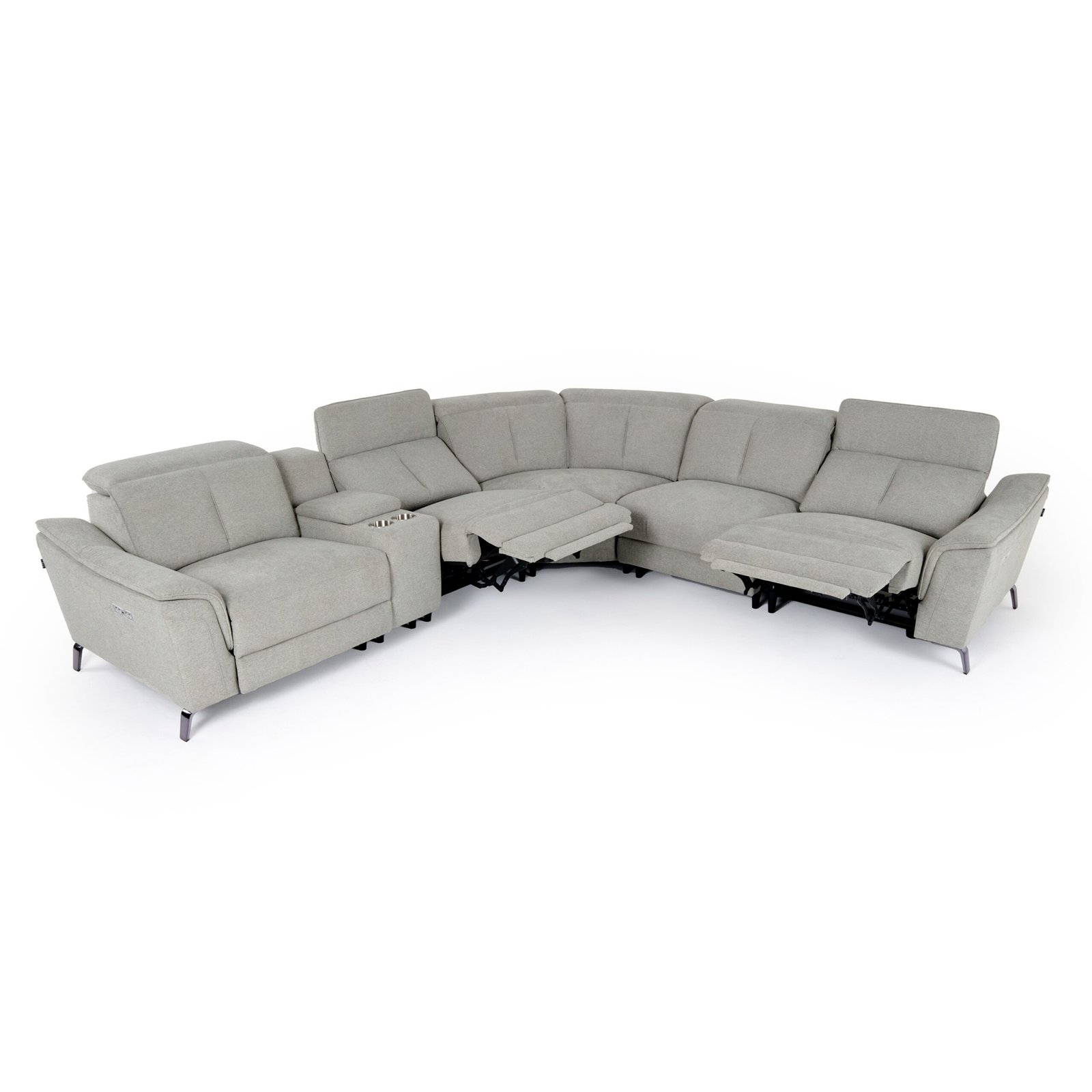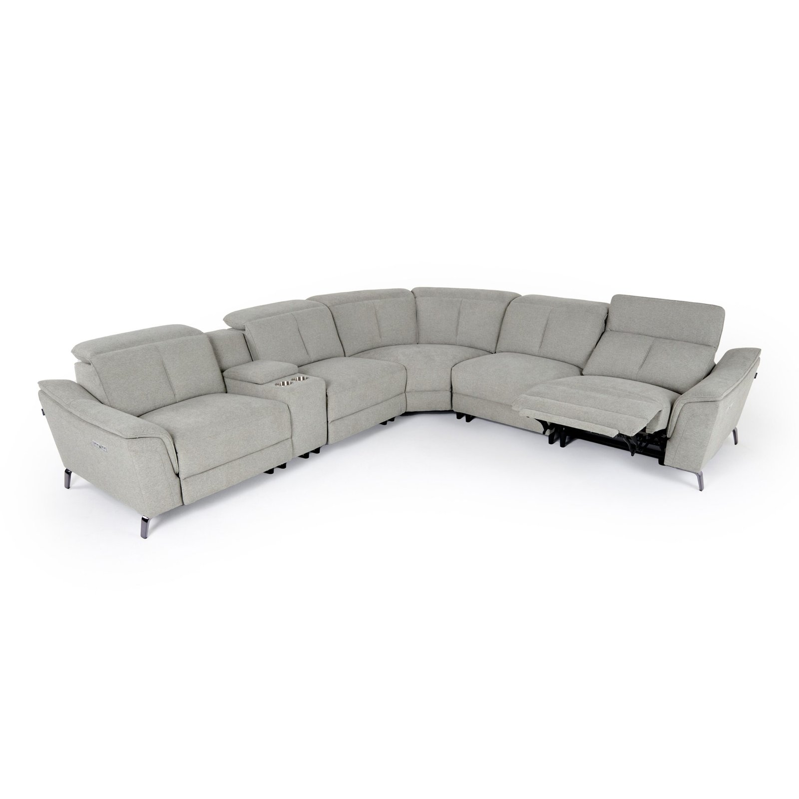Divani Casa Lloyd – Seccional moderna de tela gris con sillones reclinables + consola